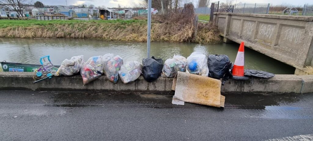 Eight bags and all manner of debris collected on the canoe this morning, as our weather changed its mind every ten seconds!